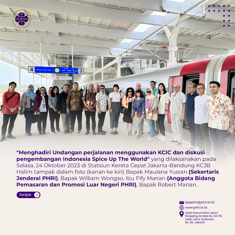 MENGHADIRI UNDANGAN PERJALANAN MENGGUNAKAN KCIC DAN DISKUSI PENGEMBANGAN INDONESIA SPICE UP THE WORLD 24 OKT 2023